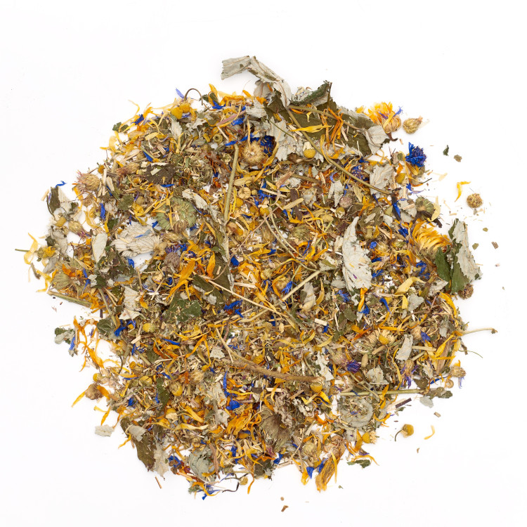 Zloženie: kvet nechtíka, list maliníka, vňať yzopu, kvet harmančeka, vňať dobromyseľu, kvet nevädze.