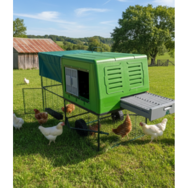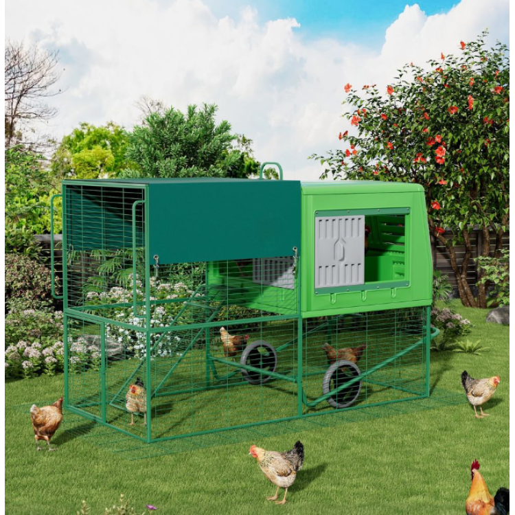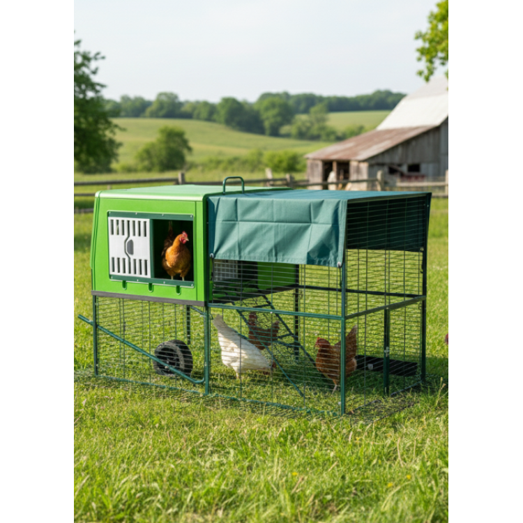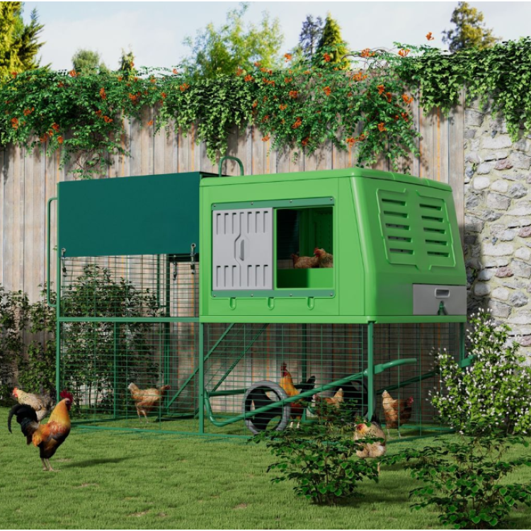 Vďaka integrovaným kolieskam je možné kurník relatívne ľahko premiestniť na iné miesto záhrady. Presun na čerstvú trávu podporuje prirodzené správanie sliepok a pomáha rovnomerne zaťažovať pozemok.