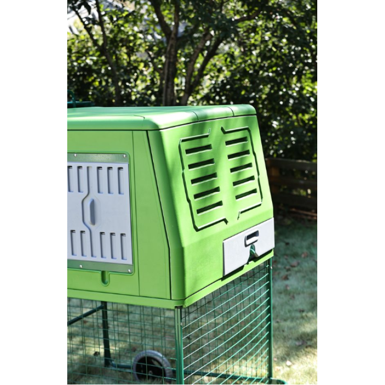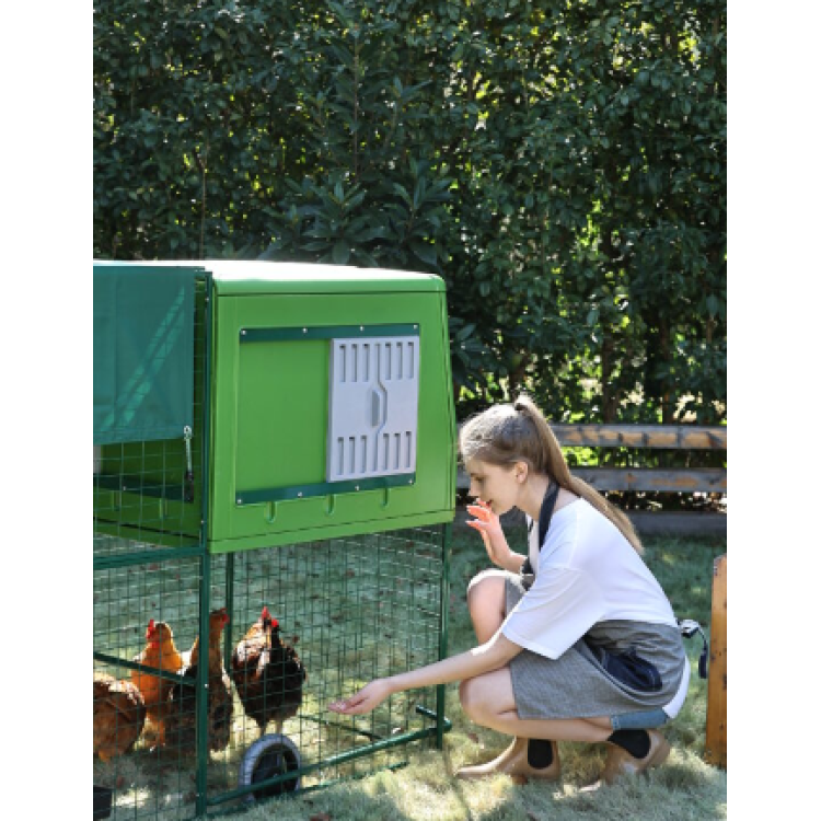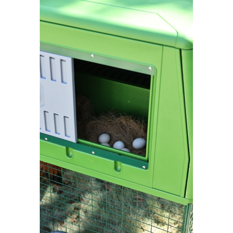 Model THE EGG CHALET kombinuje uzavretú časť na nocovanie a znášku s nadväzujúcim výbehom . Sliepky tak majú bezpečné útočisko aj priestor na dennú aktivitu.