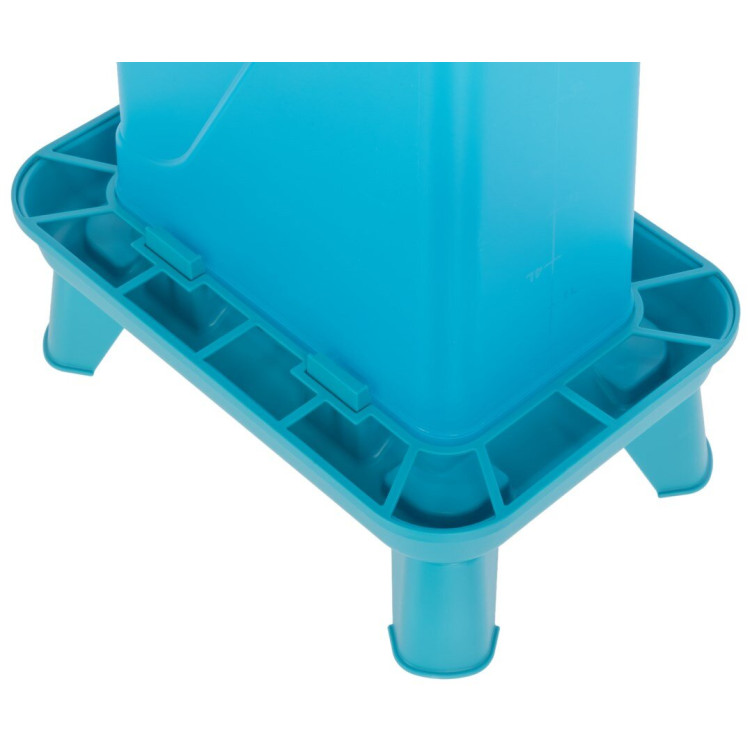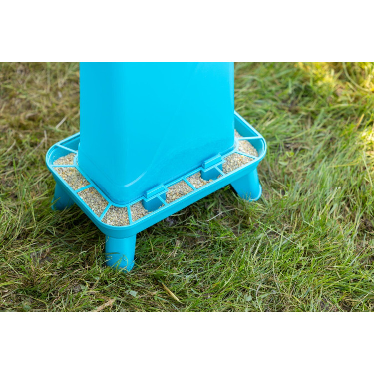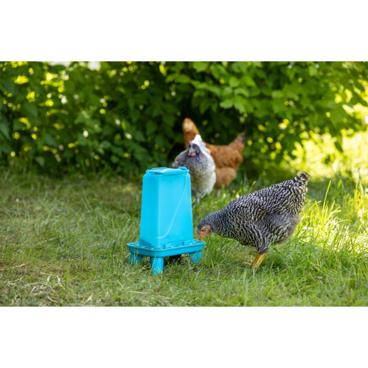 Dodávané nožičky zabezpečia stabilnejšie postavenie kŕmidla a zároveň zdvihnú krmivo vyššie nad zem. Obsah je tak lepšie chránený pred bežným znečistením z podlahy kurníka alebo výbehu, čo prispieva k čistejšiemu a praktickejšiemu kŕmeniu.