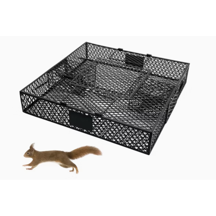 Veľká plocha a nízky profil umožňujú umiestnenie do miest s obmedzenou výškou (napr. pod palety alebo regály), zatiaľ čo pevná konštrukcia z galvanizovaného drôteného materiálu zaisťuje dlhú životnosť. Horné výklopné dvierka uľahčujú hygienické vyprázdnenie a dve pevné uši umožňujú bezpečné prenášanie aj s chytenými zvieratami.