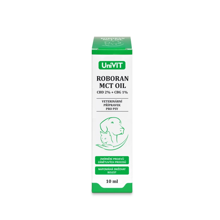 Roboran MCT OIL CBD2%+CBG1% je ideálnou voľbou pre zlepšenie zdravotného stavu a pohody vašich zvierat, poskytujúce komplexnú podporu od zmiernenia bolesti po zlepšenie imunitného systému