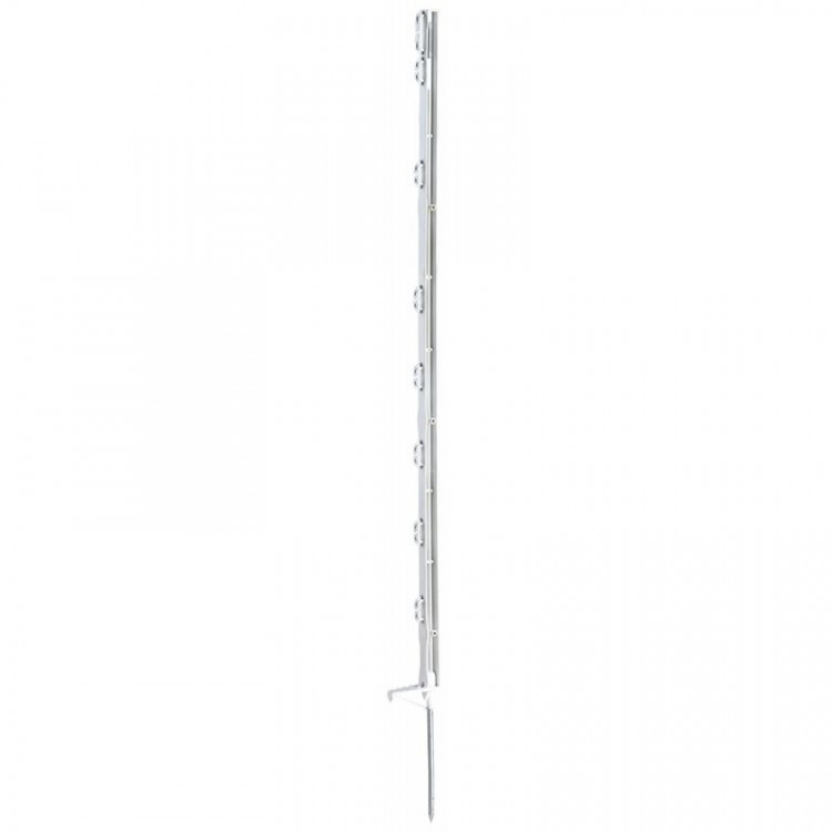 Stabilný stĺpik je základ, aby vodiče zostali napnuté a ohrada fungovala. Tento model má celkovú dĺžku 105 cm a hrot do zeme dlhý 18 cm, ktorý prispieva k istejšiemu ukotveniu. Pozdĺžne vystuženie navyše podporuje celkovú stabilitu stĺpika.